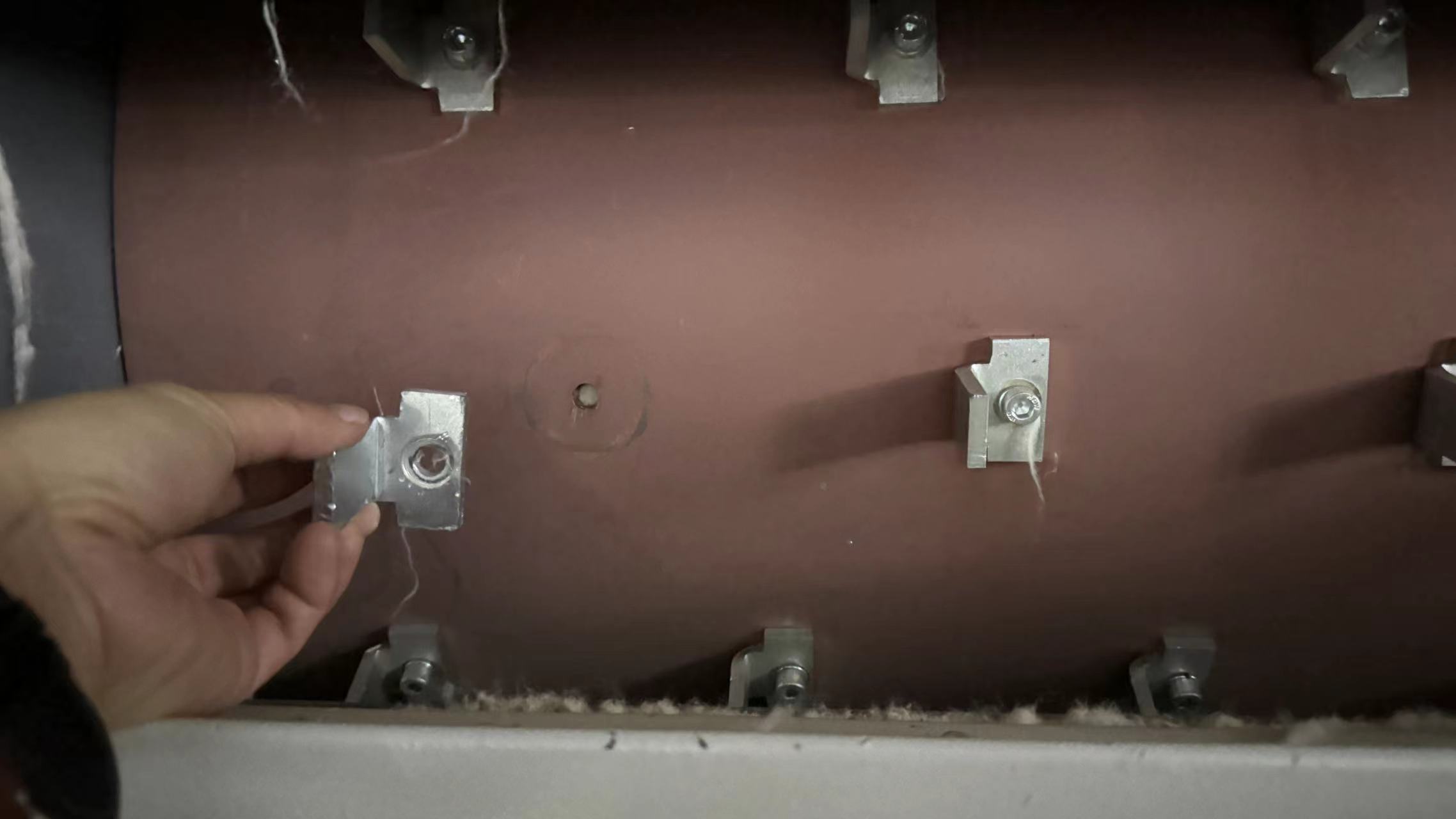 该流程为“轴流开棉机+精开棉+6仓混棉机”,设备为用户自选自配,轴流与多仓不是一个厂家生产;安普工程师立刻赶到现场进行火源溯源,发现问题在轴流一只L型打击刀片螺丝断裂脱落,流落到精开棉机,卡在喂棉罗拉处,磨擦起火。