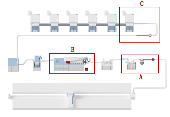 图一:安普产品在清梳联安装位置流程图